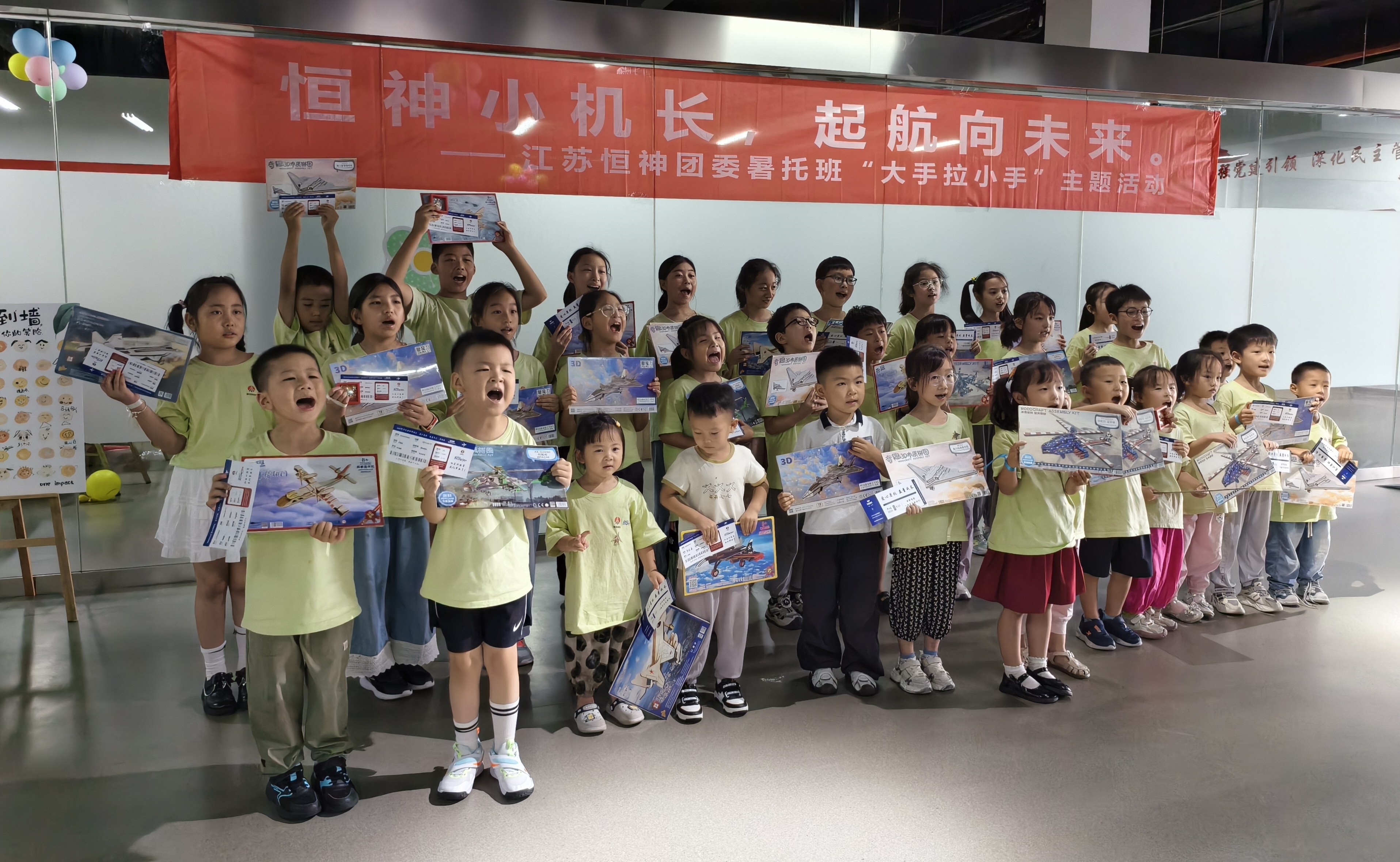 8月12日下午,恒神股份愛心暑托班的活動(dòng)場(chǎng)地變身歡樂航空港,約50名職工子女化身 “恒神小機(jī)長(zhǎng)”,在團(tuán)委青年們的帶領(lǐng)和陪伴下,開啟了一場(chǎng)充滿歡笑與成長(zhǎng)的航空主題奇妙之旅。這場(chǎng)以 “恒神小機(jī)長(zhǎng)?起航向未來” 為主題的趣味游戲活動(dòng),讓孩子們?cè)谳p松愉快的游戲中收獲了知識(shí)、初步建立了團(tuán)隊(duì)互助協(xié)作的觀念。開場(chǎng)破冰:舞蹈牽情誼,小隊(duì)齊集結(jié)隨著歡快的音樂旋律響起,活動(dòng)正式拉開帷幕。5名團(tuán)委青年與孩子們手拉手圍成圈,跟著節(jié)奏蹦跳旋轉(zhuǎn),原本有些靦腆的小朋友們很快被活潑的氛圍感染,大廳里瞬間充滿了銀鈴般的笑聲。這場(chǎng)破冰舞蹈就像一根無形的線,迅速拉近了青年志愿者與孩子們的距離。在簡(jiǎn)要的自我介紹后,大家通過抽取彩色手環(huán),分成了紅、黃、藍(lán)、綠、白五支小隊(duì),展開了一場(chǎng)場(chǎng)趣味比拼。趣味闖關(guān):航空主題游戲里的知識(shí)與協(xié)作折紙飛機(jī)環(huán)節(jié)迅速點(diǎn)燃了孩子們的激情。大家拿著 A4 紙,跟著領(lǐng)隊(duì)老師學(xué)習(xí)折疊技巧,有的還別出心裁地畫上笑臉和花紋。“三、二、一,起飛!” 當(dāng)數(shù)十架紙飛機(jī)穿過 “書架圓環(huán)” 時(shí),大廳里爆發(fā)出陣陣歡呼。“我是拼圖小能手” 環(huán)節(jié)堪稱對(duì) “速度與協(xié)作” 的考驗(yàn)。當(dāng)飛機(jī)拼圖被分發(fā)到各隊(duì)時(shí),孩子們立刻圍坐在一起,七手八腳地開始拼接。“這塊應(yīng)該在這里!”“不對(duì),看機(jī)翼的形狀!” 團(tuán)委志愿者們?cè)谂阅托囊龑?dǎo),既不包辦代替,又及時(shí)給迷茫的小隊(duì)員們支招。最終,各支隊(duì)伍都順利完成了拼圖任務(wù)。“飛機(jī)連連看” 游戲成了記憶力大比拼。孩子們盯著倒扣的紙牌,時(shí)而蹙眉思考,時(shí)而拍手歡呼,團(tuán)委志愿者們則在一旁計(jì)時(shí)鼓勁、還要熱心的小朋友不時(shí)用掌聲鼓勵(lì)加油。最終,所有孩子都贏得了木制飛機(jī)模型拼圖,獲勝隊(duì)伍的小朋友還優(yōu)先挑選了心儀的款式。溫情收尾:徽章與機(jī)票見證成長(zhǎng),愛與理念扎根心間活動(dòng)尾聲,每位小飛行員都領(lǐng)到了閃亮的 “恒神小機(jī)長(zhǎng)” 徽章,驕傲地別在胸前。當(dāng)印有每個(gè)孩子名字的 “結(jié)業(yè)機(jī)票” 被鄭重頒發(fā)時(shí),不少小朋友舉著機(jī)票和模型向志愿者們開心地道謝。本次活動(dòng)旨在讓職工子女在歡樂中感受航空精神,同時(shí)通過青年志愿者的陪伴,傳遞企業(yè)對(duì)員工家庭的關(guān)懷。這場(chǎng)持續(xù)兩小時(shí)的活動(dòng),像一根堅(jiān)韌的 “情感碳纖維”,將企業(yè)、家庭與孩子緊緊相連。恒神團(tuán)委的青年們用熱情與愛心,為孩子們的暑假添上了一抹明亮的色彩,也讓 “愛與未來一起飛” 的溫暖理念,深深扎根在每個(gè)人心中。